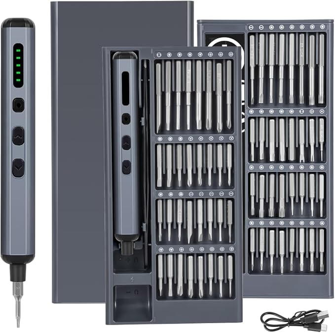 ✅ Highlights: Rechargeable – Multiple torque levels – Magnetic bit set – Compact and lightweight